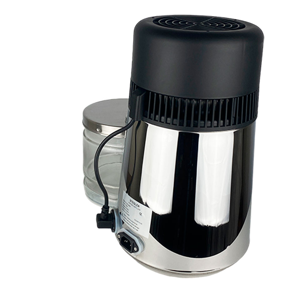Аквадистиллятор Stegler BL−9900 со стеклянным приёмником — настольный прибор для получения дистиллированной воды в домашних условиях, небольших лабораториях, аптеках и отделениях больниц. Корпус выполнен из металла, водосборник — из стекла.