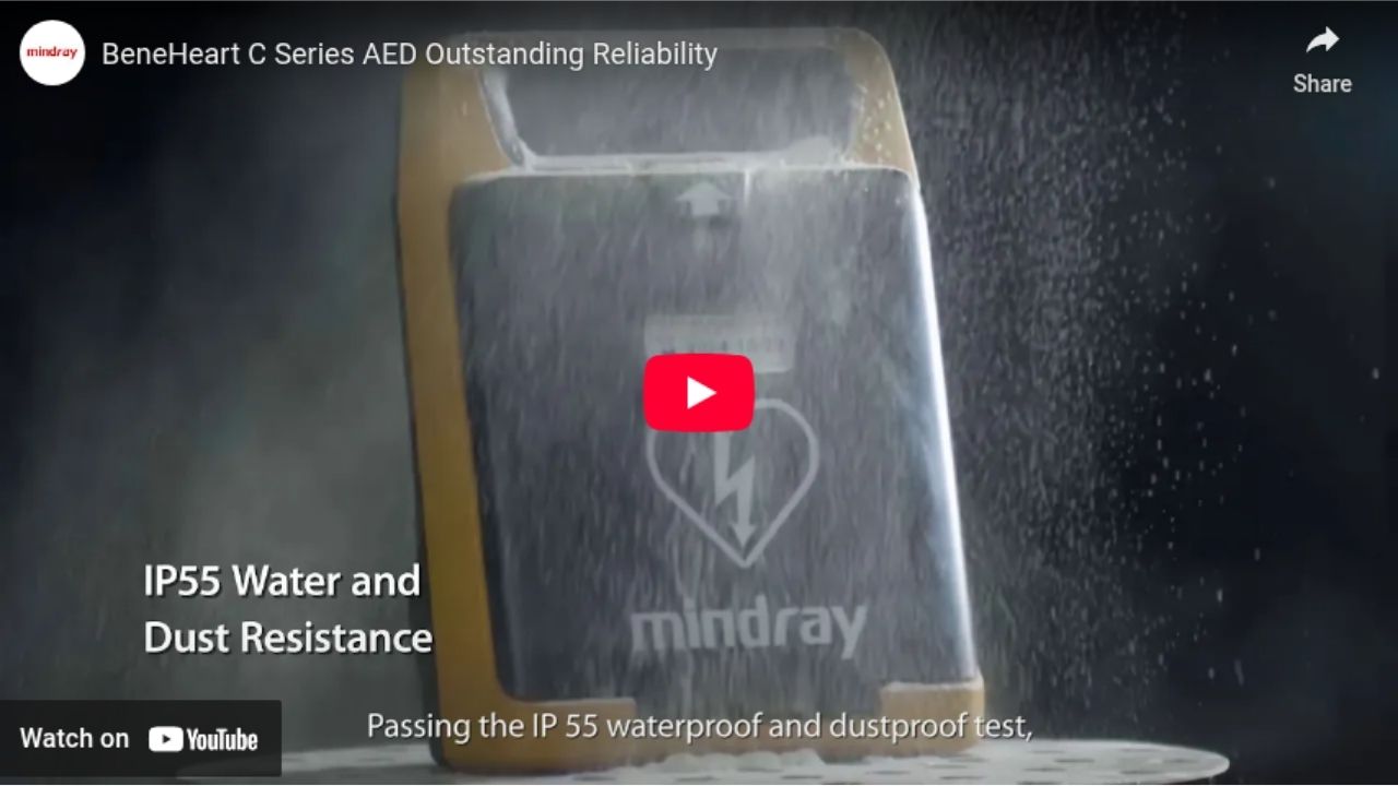 Дефибрилляторы BeneHeart серии С обладают стойкостью к падению с высоты до 1,5 м, а также водо- и пылестойкостью уровня IP55. Их можно использовать в самых сложных ситуациях.
