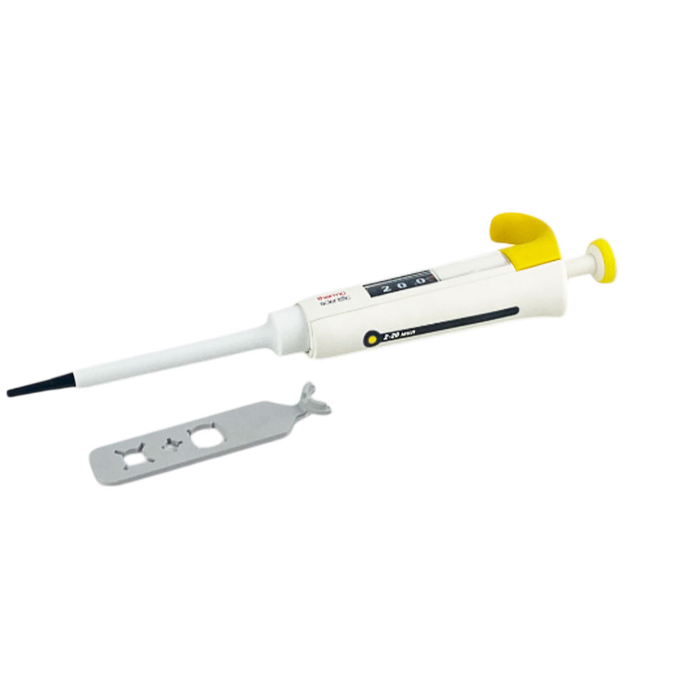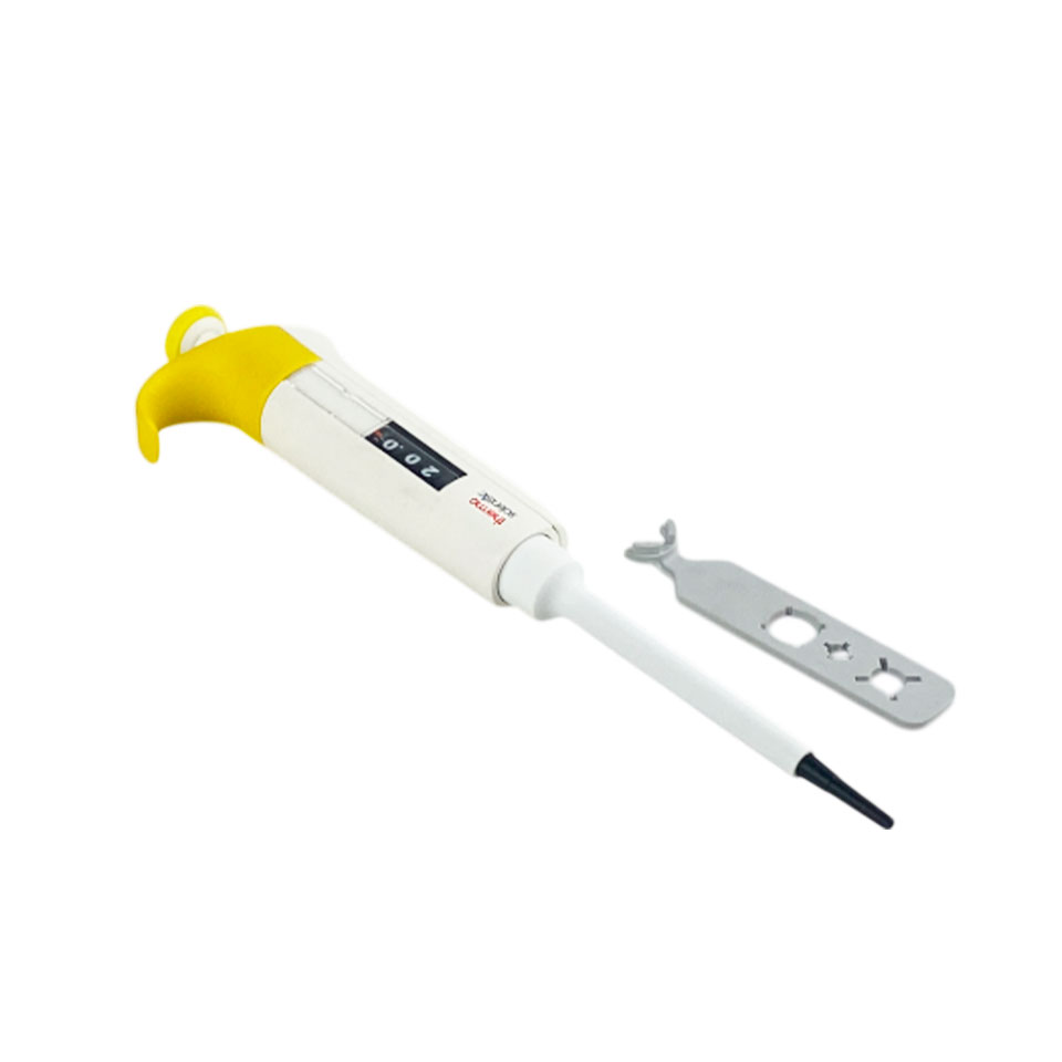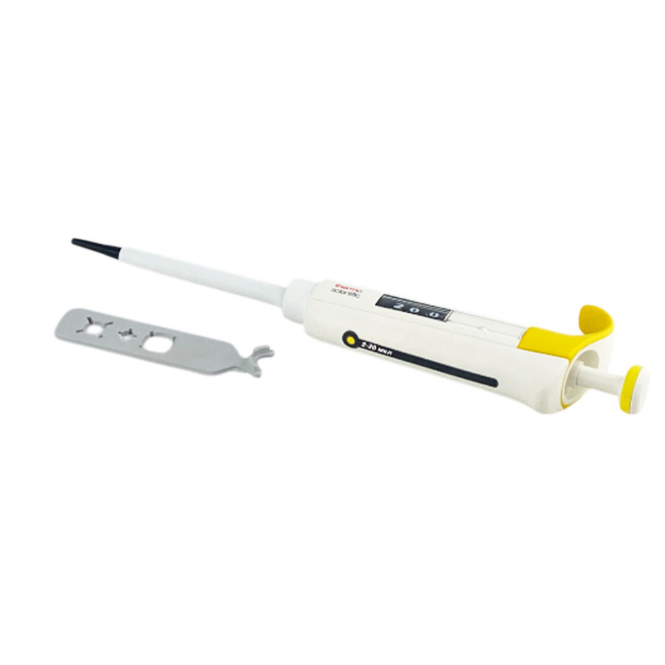 - Одноканальный дозатор с переменным объёмом 2 − 20 мкл для точного и надёжного дозирования.