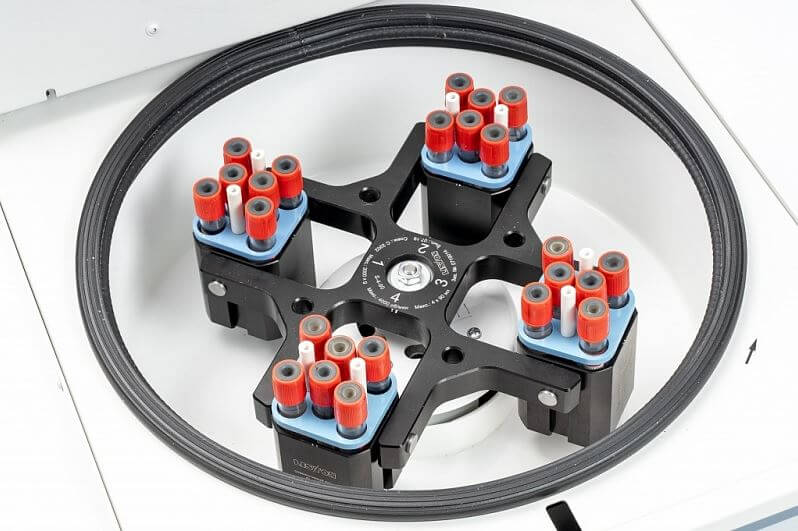 - Позволяет центрифугировать различные типы пробирок одновременно с помощью большого выбора адаптеров (около 30 видов);