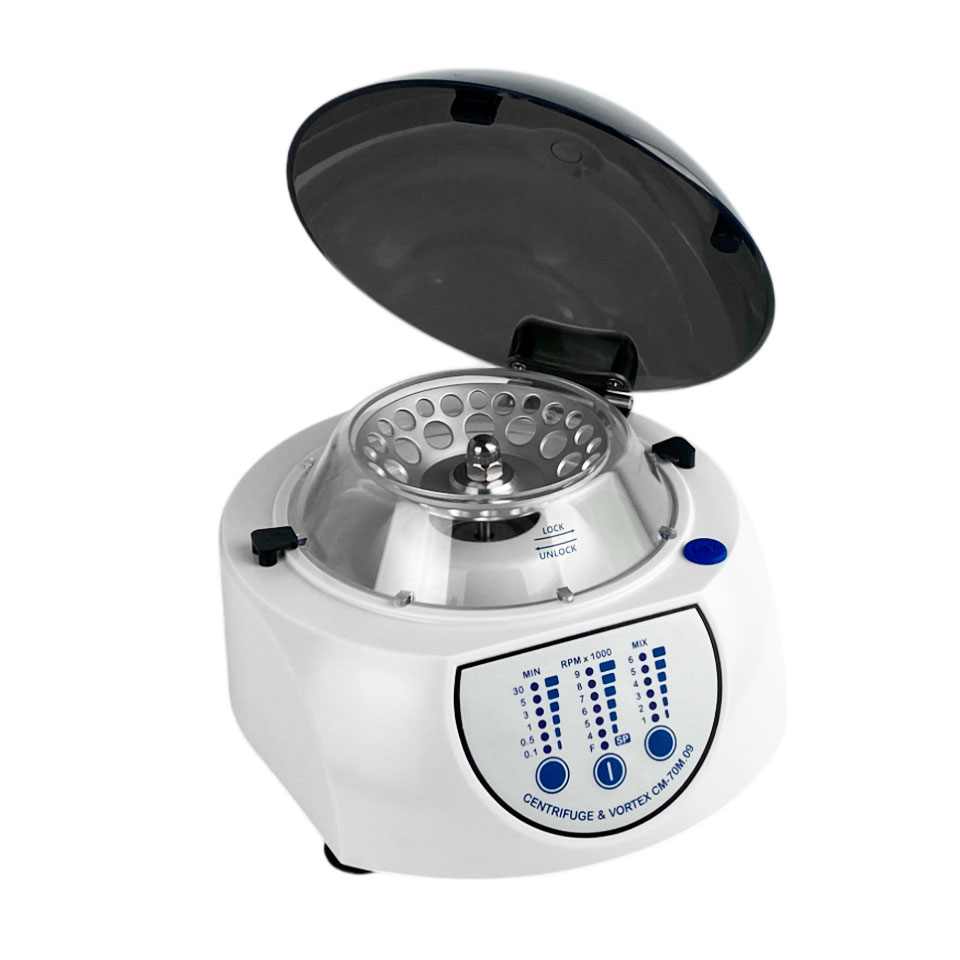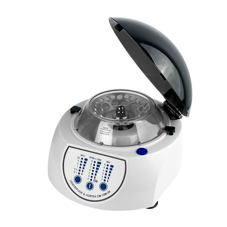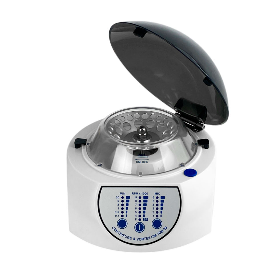 Медицинская центрифуга−вортекс ELMI СМ−70М−09 — современный лабораторный прибор, совмещающий функции центрифугирования и встряхивания образцов в одном роторе. Устройство оснащено угловым ротором, установленным на шаговом двигателе, что обеспечивает точное управление скоростью и режимами работы.