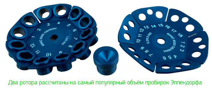 - Два сменных ротора для пробирок 0,2/0,5 мл и 1,5/2 мл.