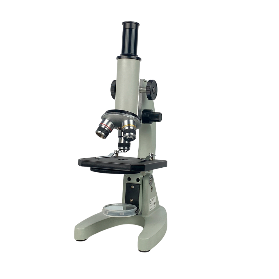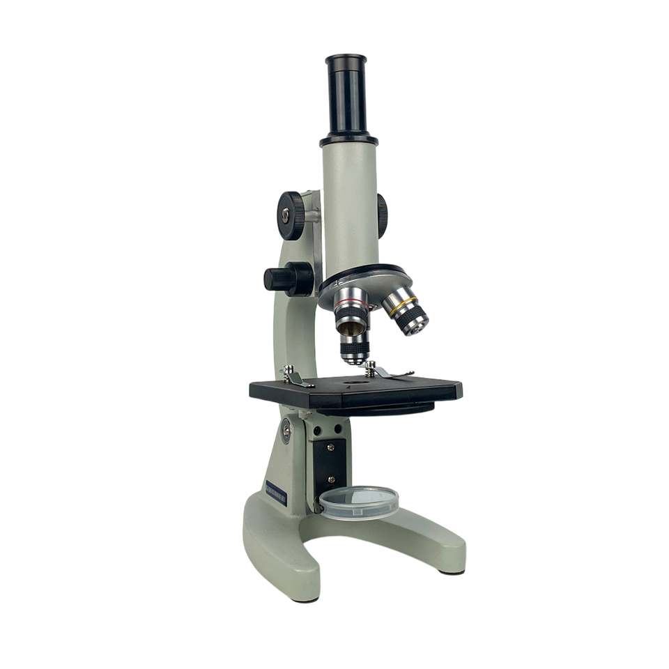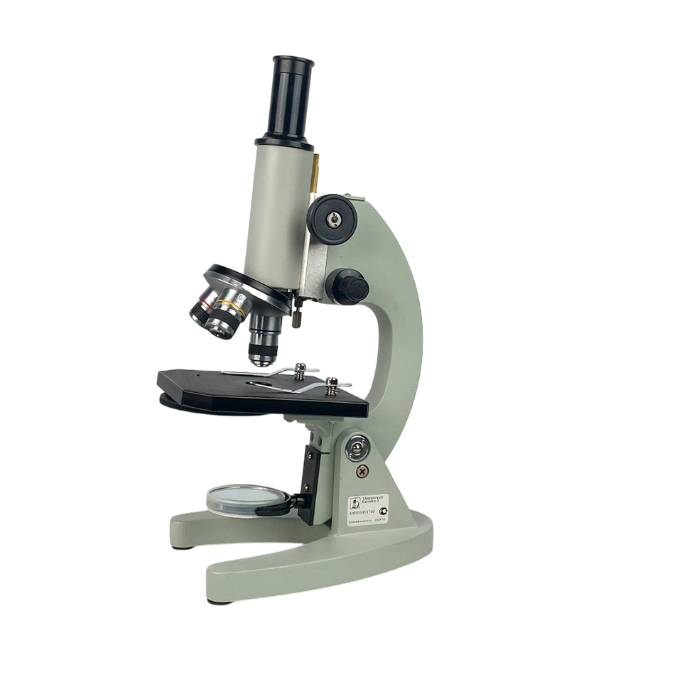 Микроскоп оснащён монокулярной насадкой с выдвижным тубусом, трёхгнездной револьверной головкой и ахроматическими объективами. Источник света — зеркало, что позволяет использовать прибор без подключения к электросети.