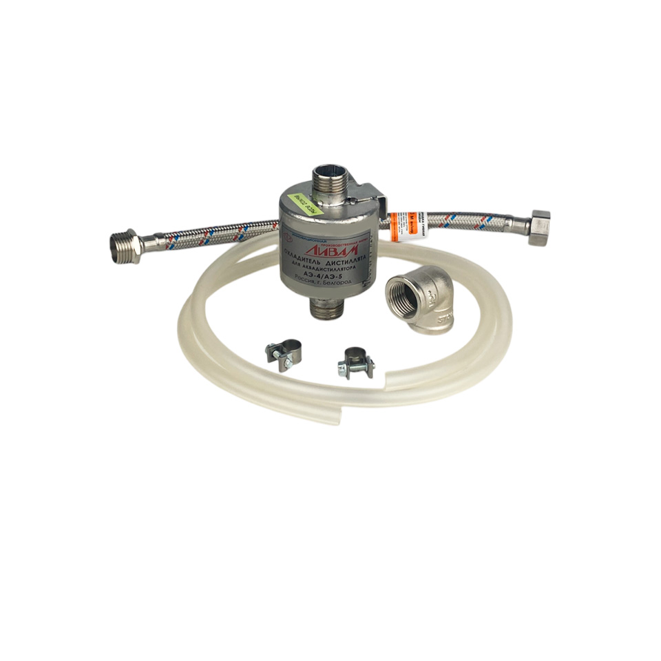 Охладитель дистиллята для аквадистилляторов Ливам АЭ−4 и АЭ−5 предназначен для снижения температуры дистиллированной воды, что обеспечивает безопасную эксплуатацию оборудования и комфорт пользователей. Он применяется: