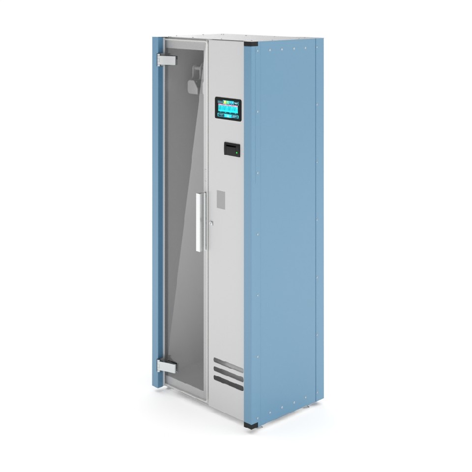 Шкаф оборудован двумя секциями: отсеком для хранения эндоскопов с подвесами в вертикальном положении и техническим отсеком для подготовки стерильного воздуха. Воздух из помещения через вентилятор проходит фильтрацию от пыли и обработку бактерицидным ультрафиолетовым излучением, после чего поступает в основной отсек. Подогретый стерильный воздух подаётся в каналы эндоскопов через штуцеры. Дверь рабочего отсека выполнена из закалённого стекла и оснащена замком.