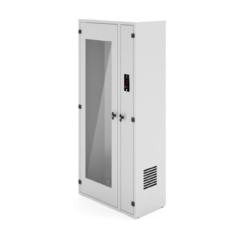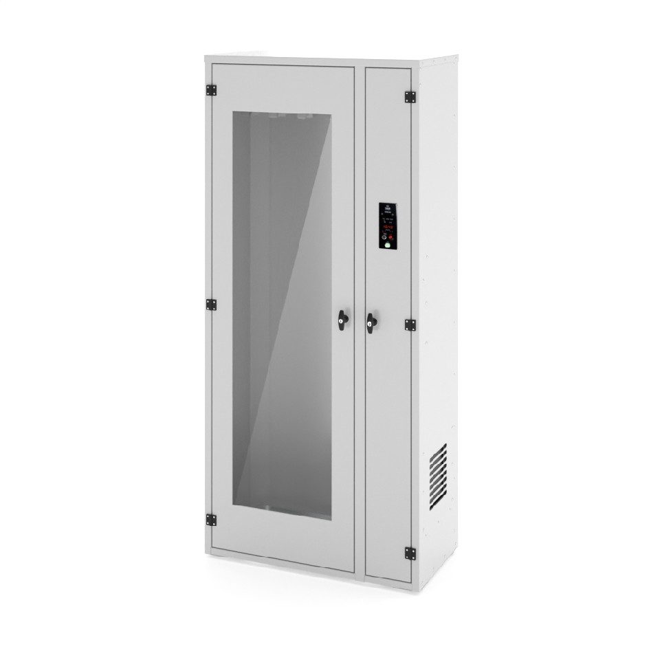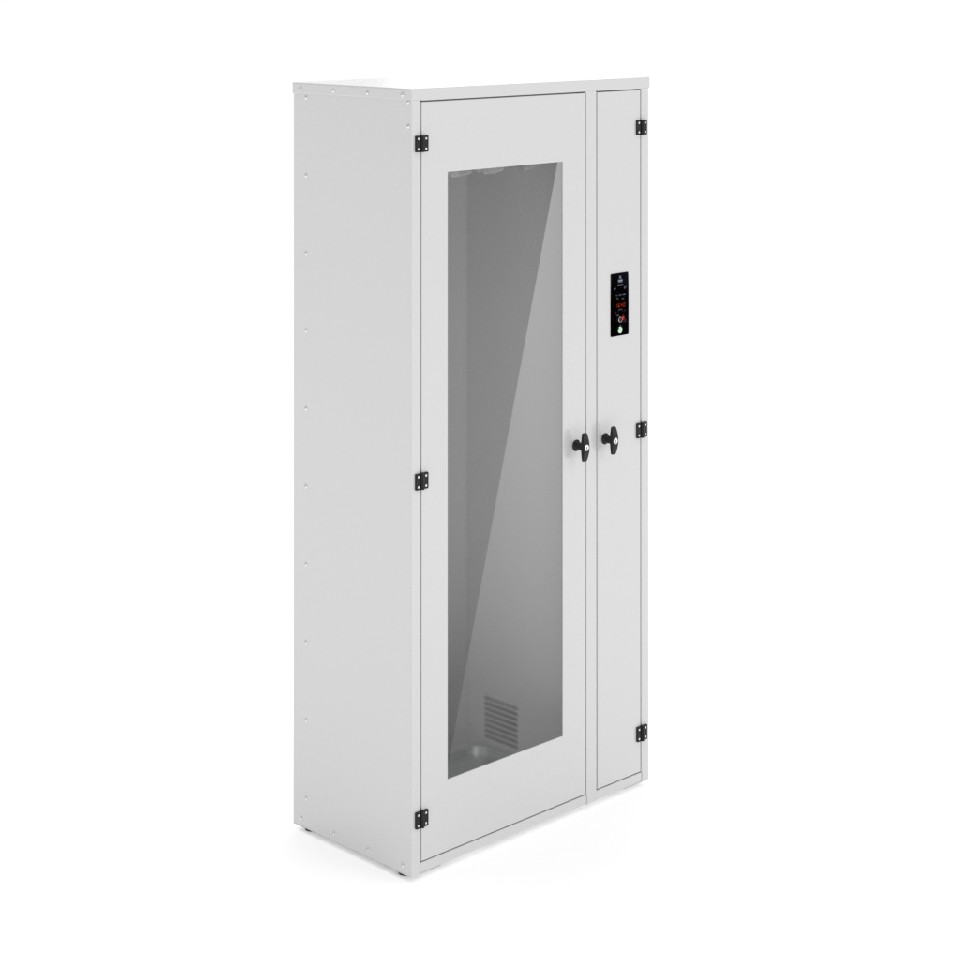 - Раздельная конструкция шкафа с отсеком хранения и техническим отсеком для подготовки воздуха снижает риск вторичной контаминации.