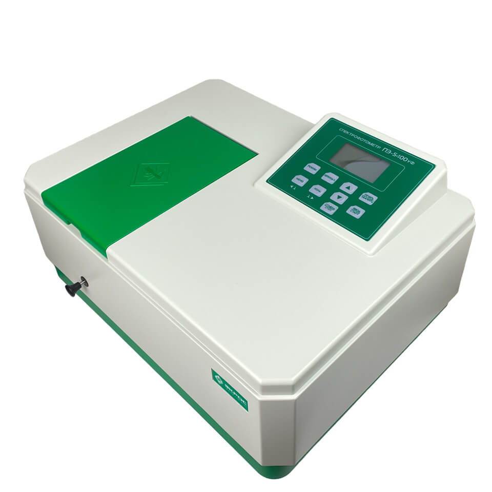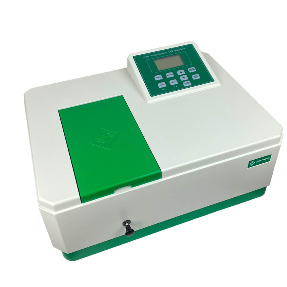 Спектрофотометр ЭКРОСХИМ ПЭ−5400УФ предназначен для измерения коэффициента пропускания и оптической плотности жидкостей в ультрафиолетовой и видимой областях спектра с целью определения концентрации растворённых компонентов. Прибор применяется: