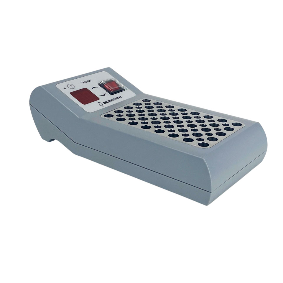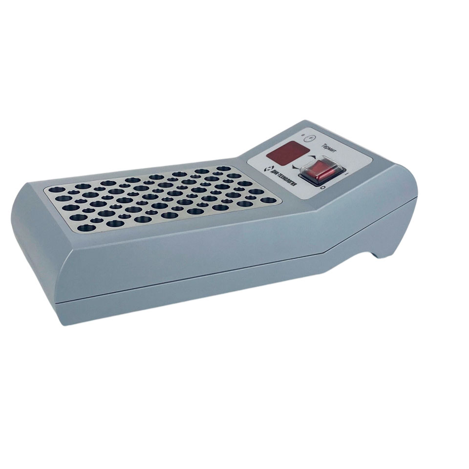 Термостат поддерживает заданную температуру матрицы, в гнёзда которой устанавливаются пробирки типа «Эппендорф» объёмом 0,5 и 1,5 мл. Нагрев матрицы осуществляется керамическими нагревательными элементами, охлаждение происходит за счёт естественного рассеивания тепла. Контроль температурного режима и работы прибора выполняется с помощью встроенной микро-ЭВМ.
